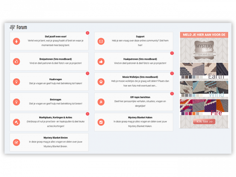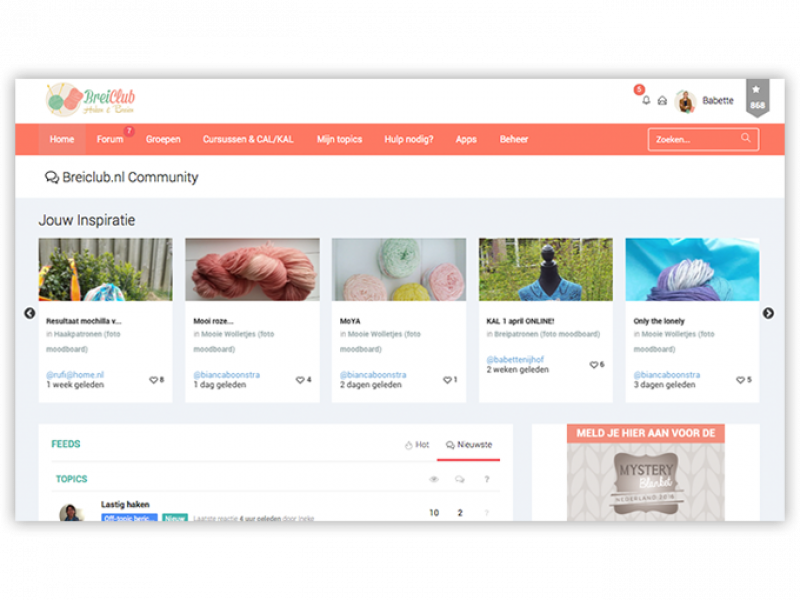 Word lid en betreed binnen 30 seconden het online hoofdkantoor van Breiclub! De gezelligste en handigste ontmoetingsplek voor hakers en breiers. Je ontmoet andere creatievelingen, je stelt vragen en helpt anderen waardoor je zelfs zogenaamde karmapunten kan verdienen! Overzichtelijk, gezellig, creatief & inspirerend!