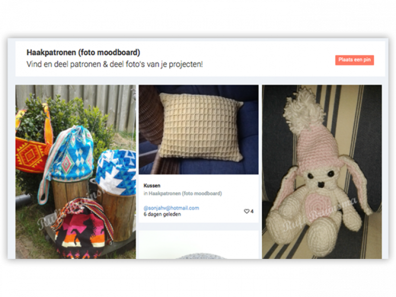 We hebben een team huisontwerpers die elke week een exclusief patroon voor jou maakt. Daarnaast hebben we ook een soort Pinterest patronenbord! Je kunt hier jouw patronen delen en anderen delen patronen met jou dus inspireer en laat je inspireren!